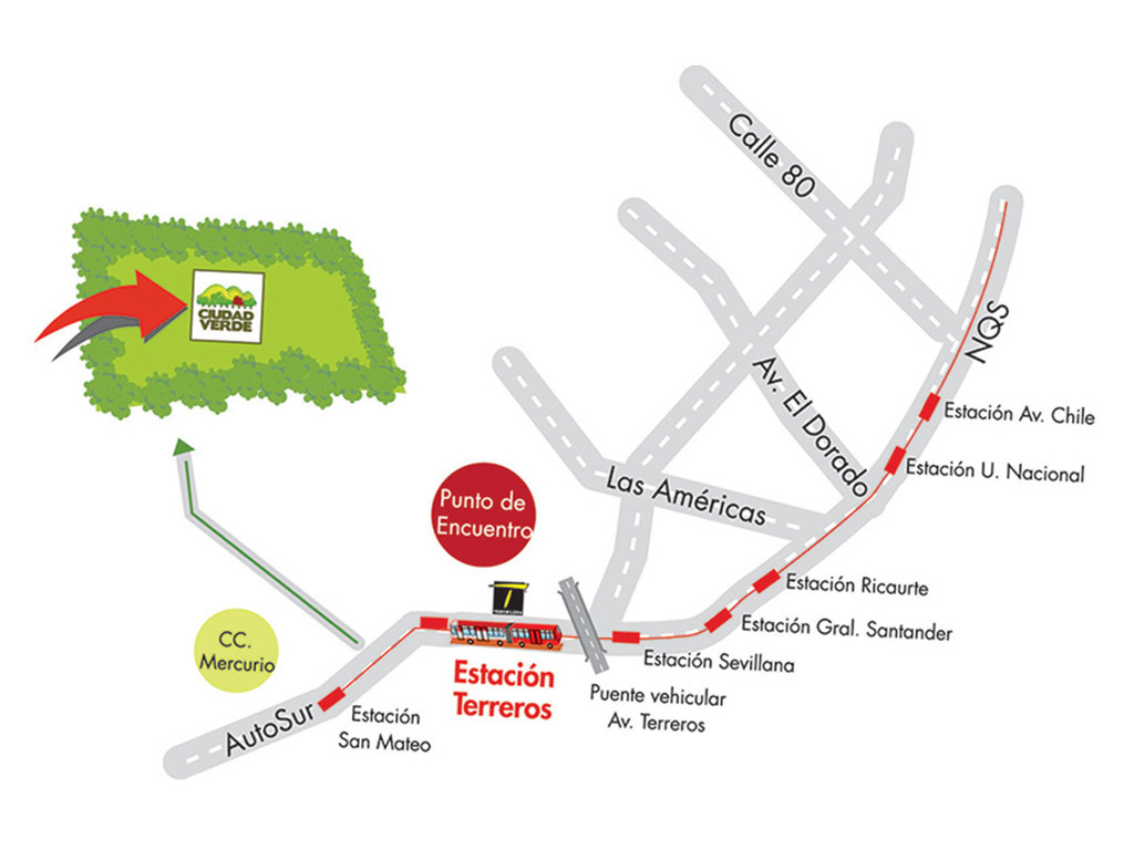 Ciudad Verde es un Macroproyecto que se encuentra en el municipio de Soacha, muy cerca del Centro Comercial Mercurio. Abajo de la Autopista Sur, por la avenida potrero grande.